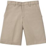 Boys flat-front short. 2 Side and 2 rear pockets, belt loops, interior adjustable waist. 65% Poly/ 35% Cotton twill holds color and requires little or no ironing.