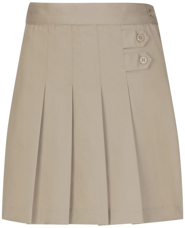 . Stretch twill scooter with four- pleat front, two decorative button tabs and built-in poly knit shorts. Imported. 53% Cotton, 45% Polyester, 2% Spandex.