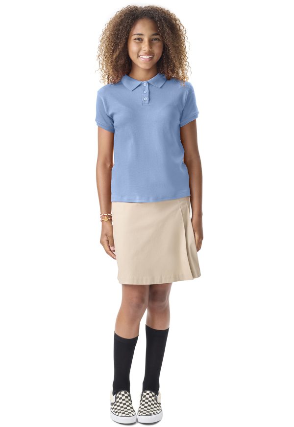 Girls Short SleeveFitted Interlock Polo (LIGHT BLUE)