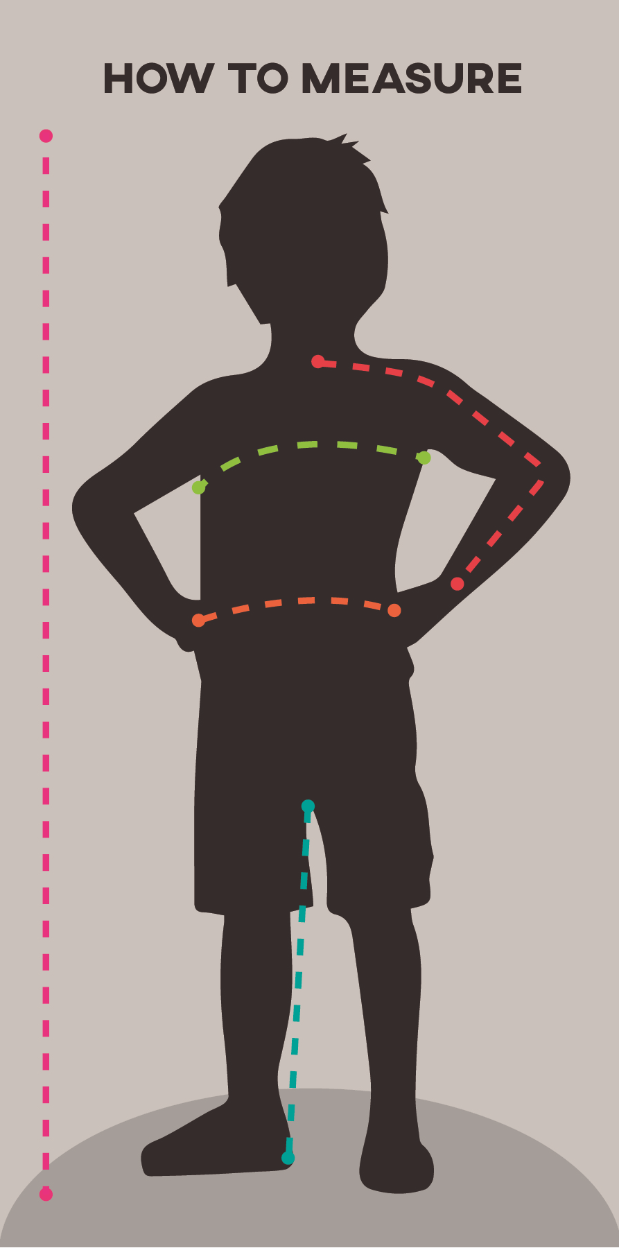 MEASURE AROUND THE WAIST (NOT OVER PANTS) AT YOUR CHILD'S NATURAL WAISTLINE.